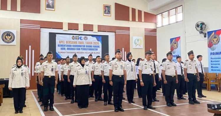 BLORA - Rumah Tahanan Negara (Rutan) Kelas IIB Blora mengikuti kegiatan Apel Bersama Awal Tahun 2026 yang diselenggarakan pada Senin, 12 Januari 2026. Kegiatan ini menjadi momentum awal penguatan pelaksanaan tugas dan fungsi aparatur di lingkungan Kementerian Koordinator Bidang Hukum, HAM, Imigrasi dan Pemasyarakatan.